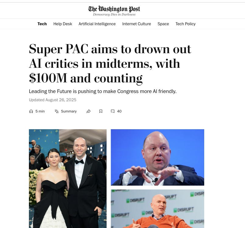 Il riepilogo di questa settimana contiene buone e cattive notizie. Una corte d’appello si è pronunciata contro i dazi di Trump, il deputato anti-monopolista Jerry Nadler si è ritirato per cedere il potere a una nuova generazione e Lyft ha posto fine ai prezzi maggiorati perché i clienti li detestano. La notizia principale della scorsa settimana che voglio analizzare è la creazione di un nuovo fondo nero politico da parte dei titani della Silicon Valley. Non voglio essere allarmista, ma se andrà come previsto, potrebbe sovvertire funzionalmente le elezioni in America.